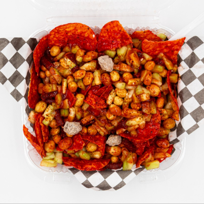 Pepino, cacahuates, chaca chaca, salado y clamato
