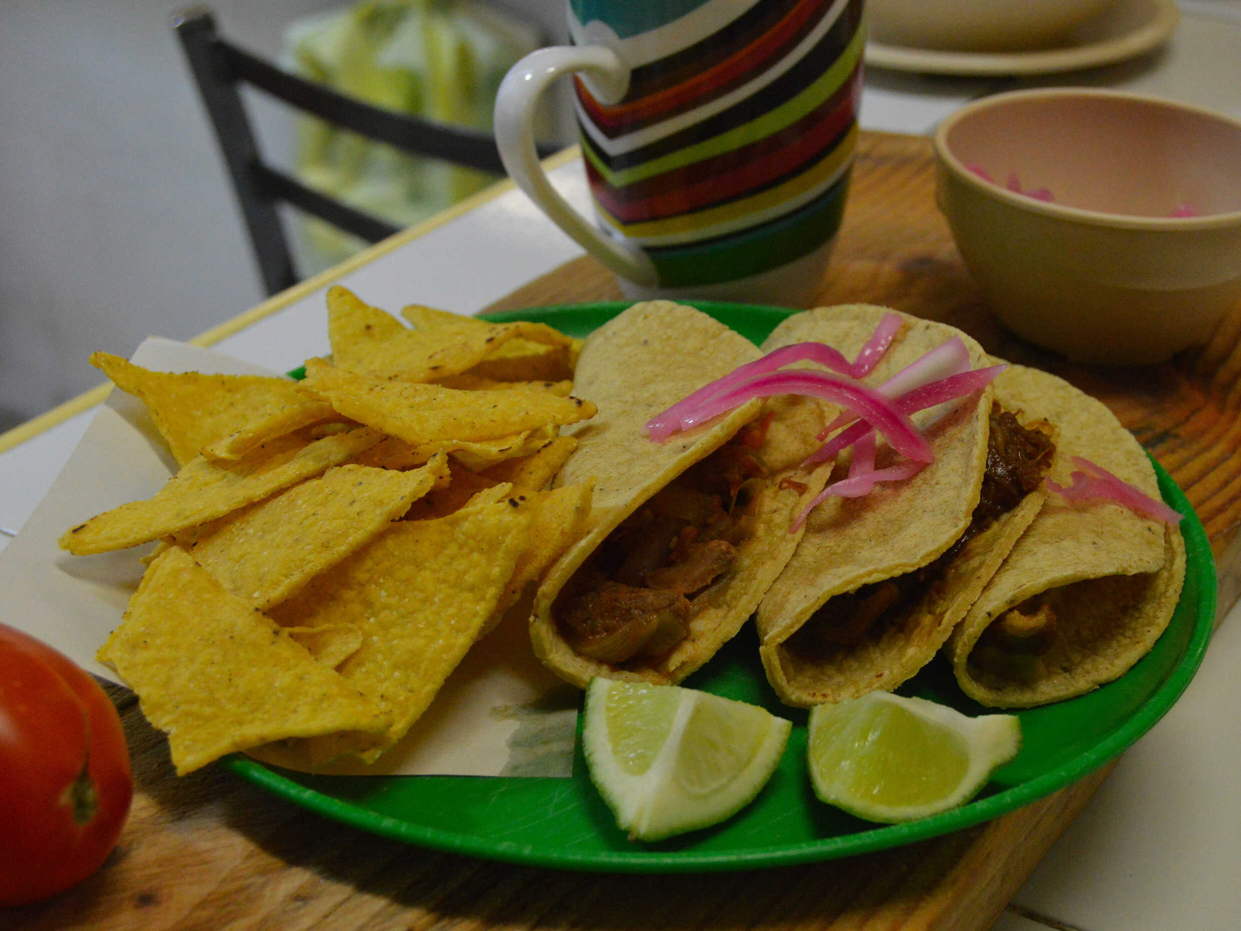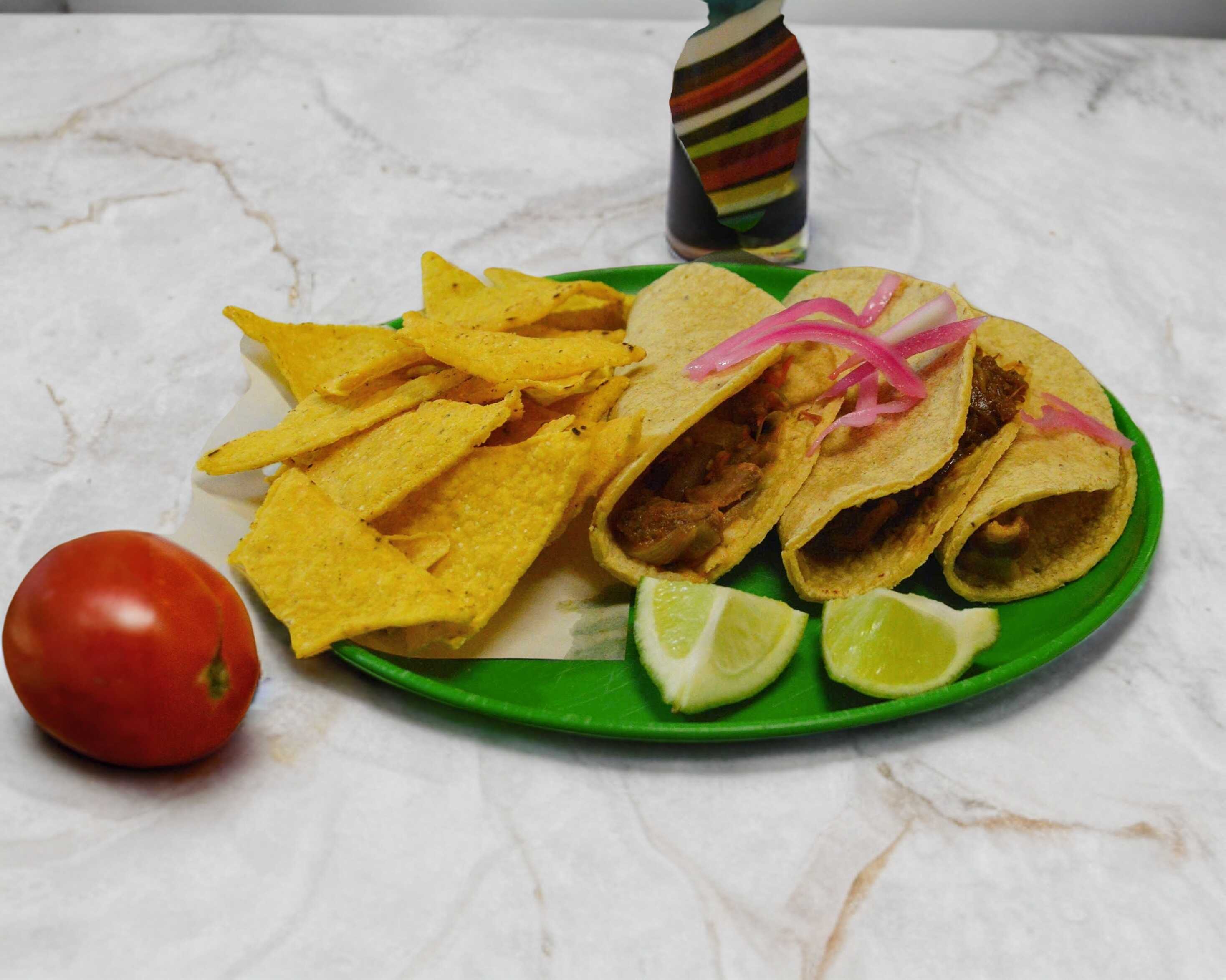 3 Tacos de Maíz con Totopos y Salsa