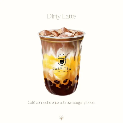 Bebida de leche con decoración de Brown Sugar al las rocas. No contiene boba