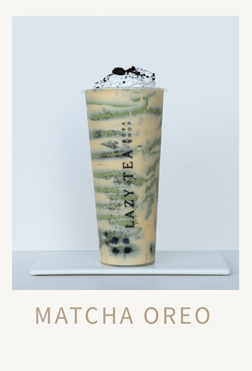 Bebida a base de té de matcha a las rocas con leche. No contiene boba