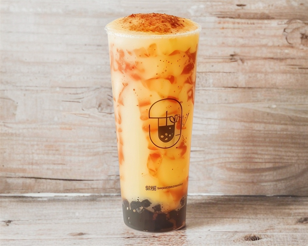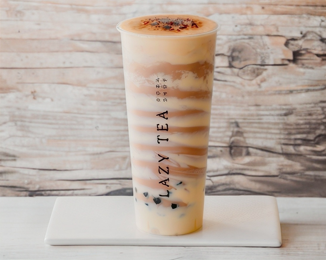 Bebida a base de té negro a las rocas con leche. No contiene boba.