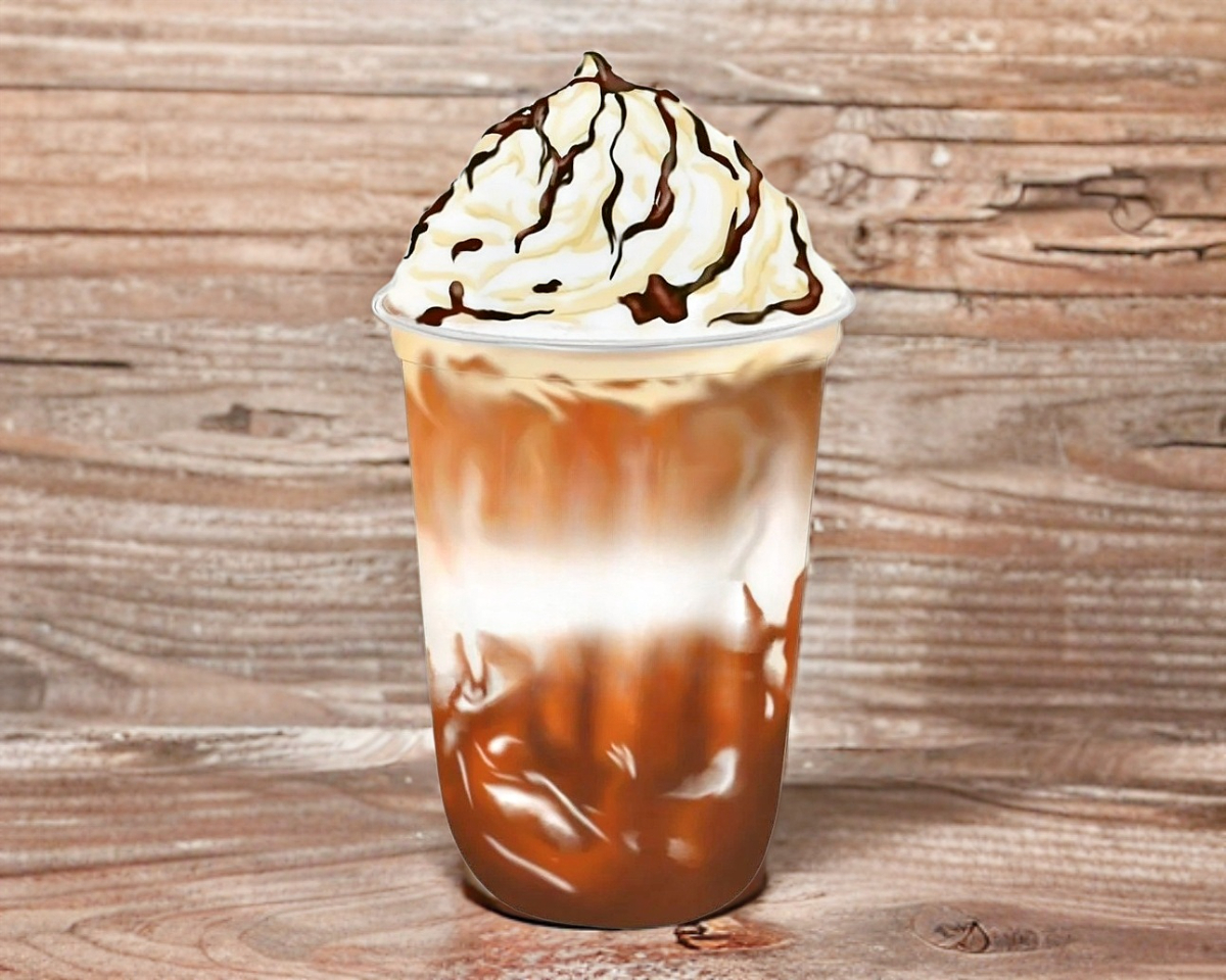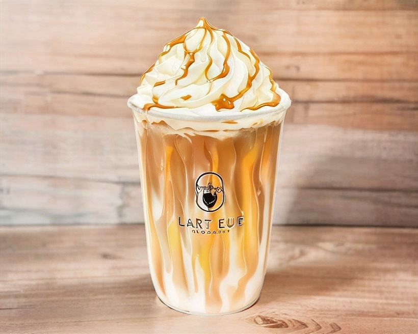 Bebida de leche con decoración de brown sugar a las rocas. No contiene boba.