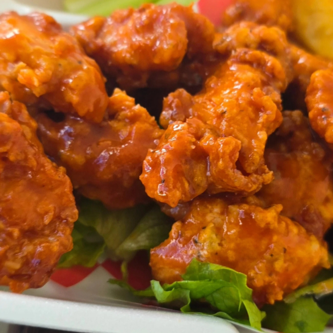 Pídelo de pechuga de pollo o boneless BBQ o Búfalo