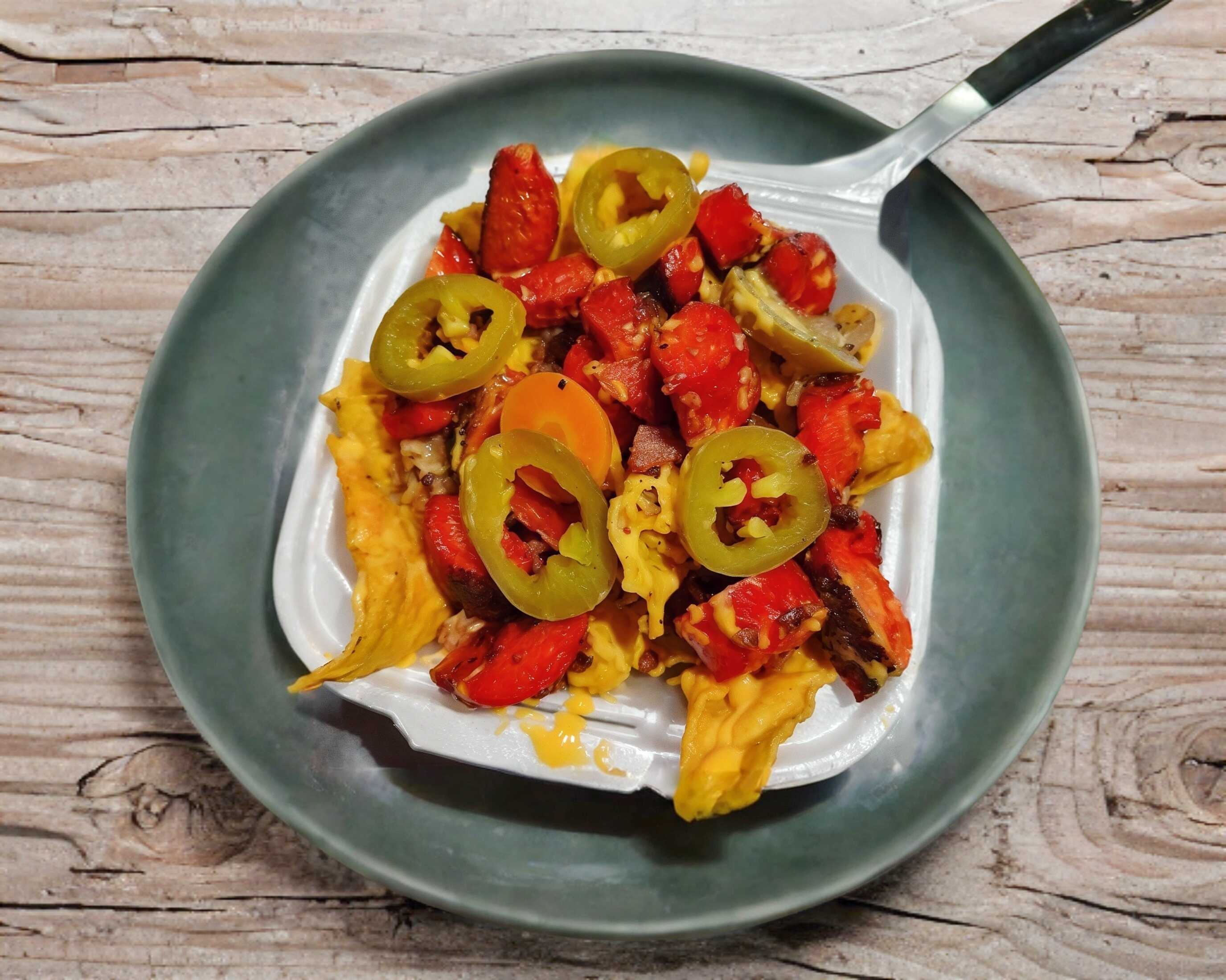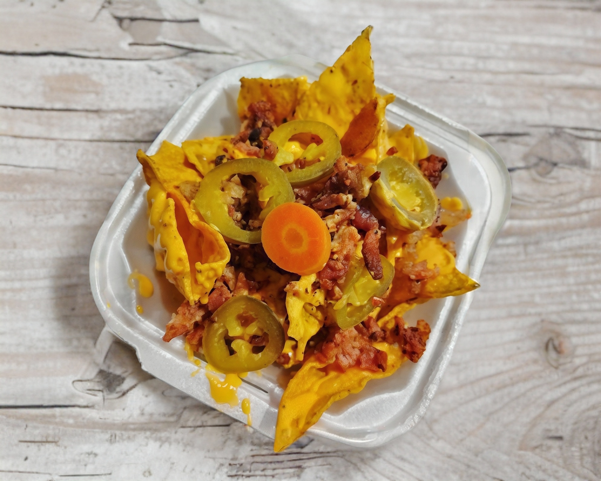 Nachos con queso una porcion de bubas y una porcion de tocino