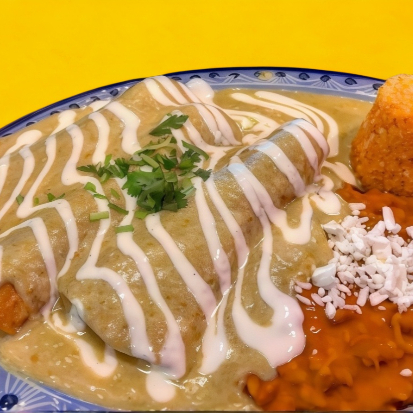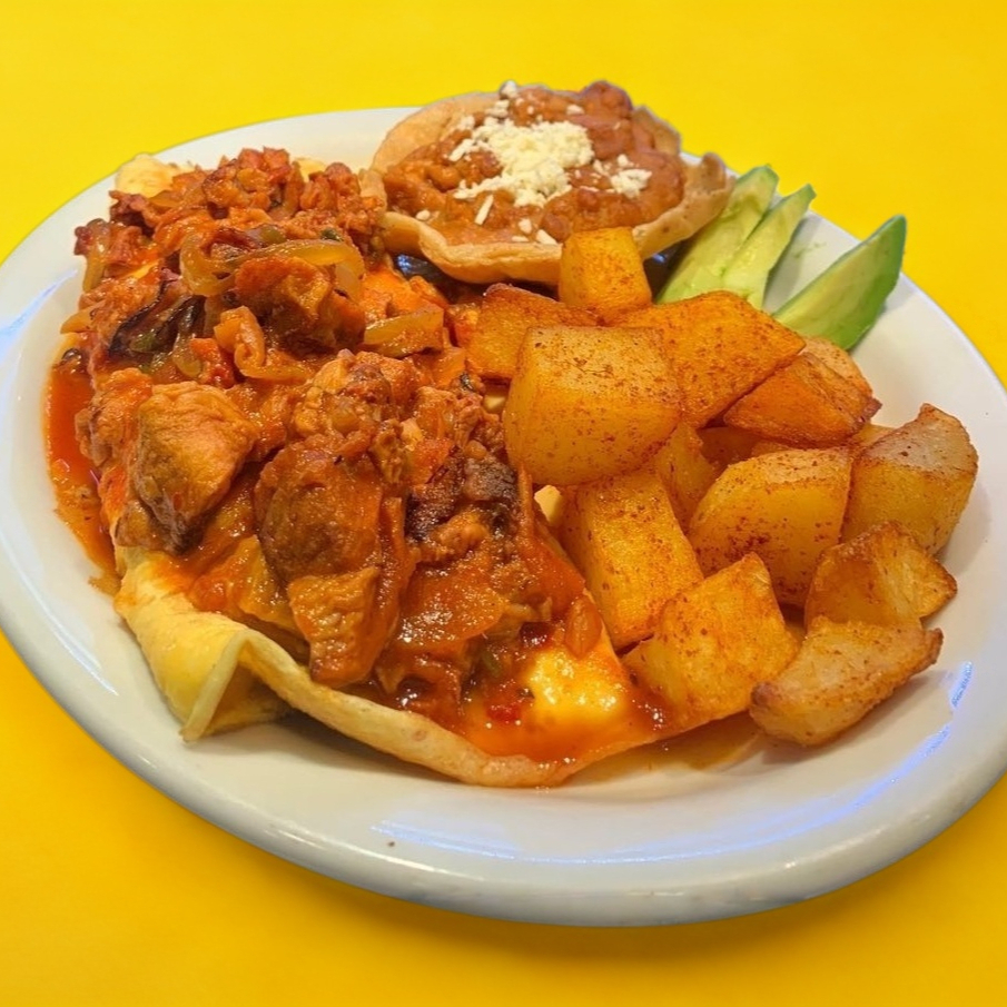 Servido con lechuga, queso, crema y frijoles. Puede ser de res o pollo.
