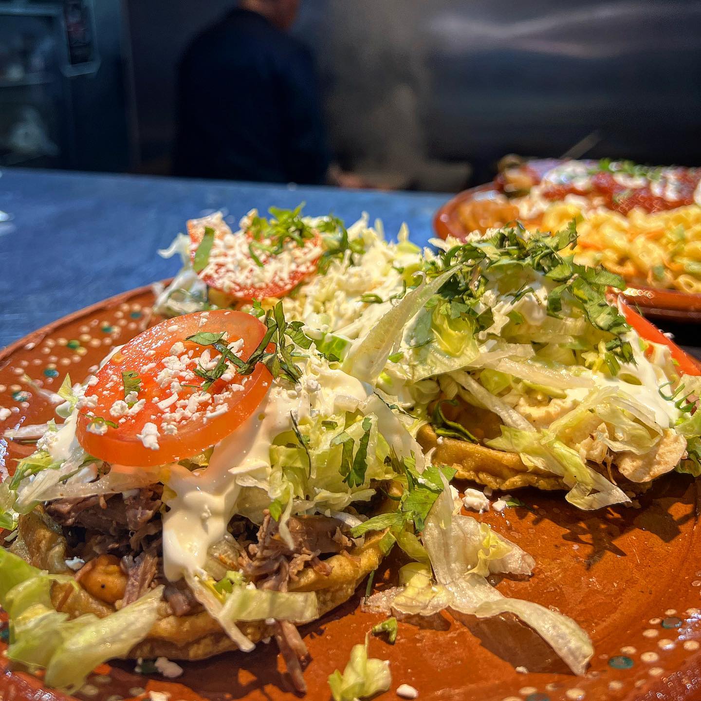 3 Sopes servidos con lechuga, queso, crema y y frijoles. Puede ser de res o pollo.