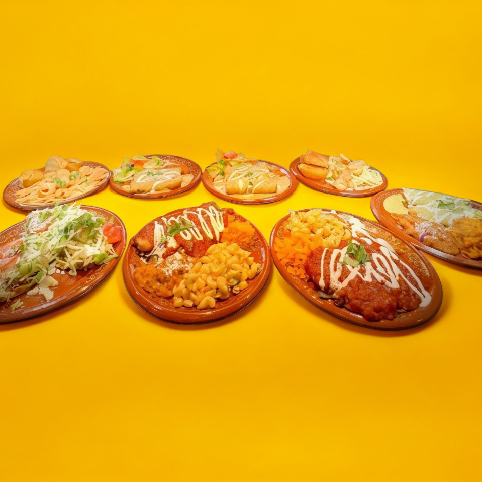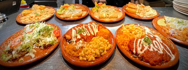 Bisteck ranchero,carne de puerco en salsa verde,chicharron prensado,barbacoa,papas con chorizo,carne con nopales,rajas con crema