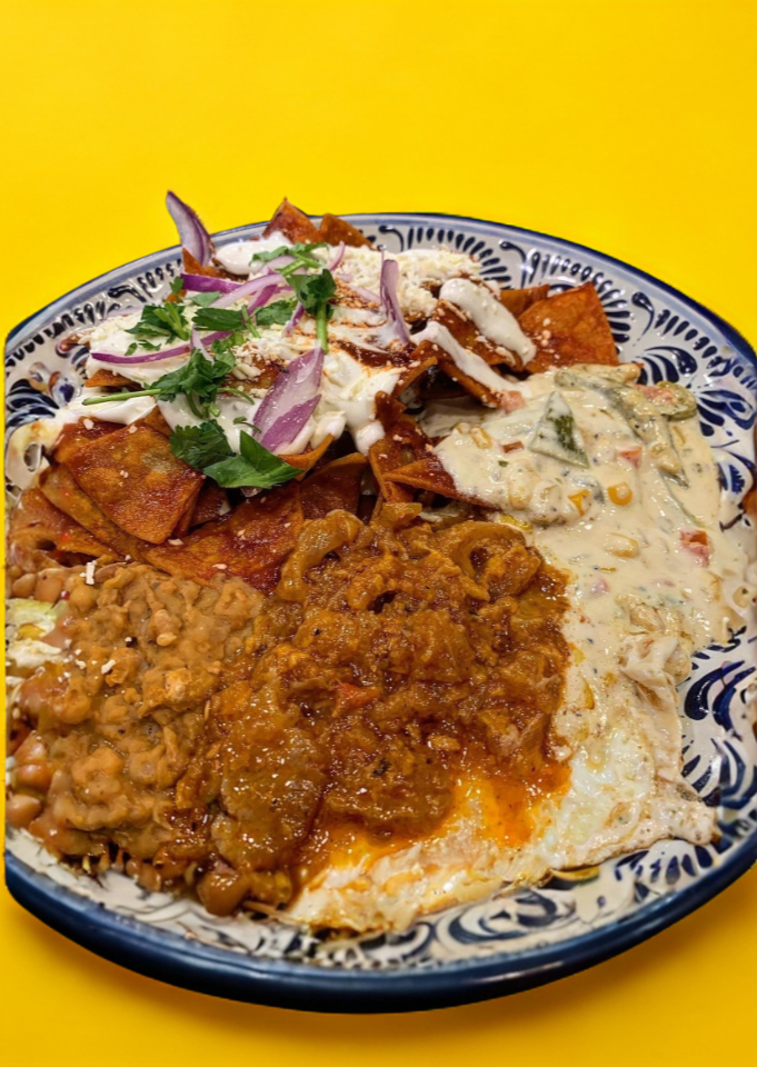 Deliciosos huevos al gusto con dos de nuestras salsas, frijoles refritos y chilaquiles.