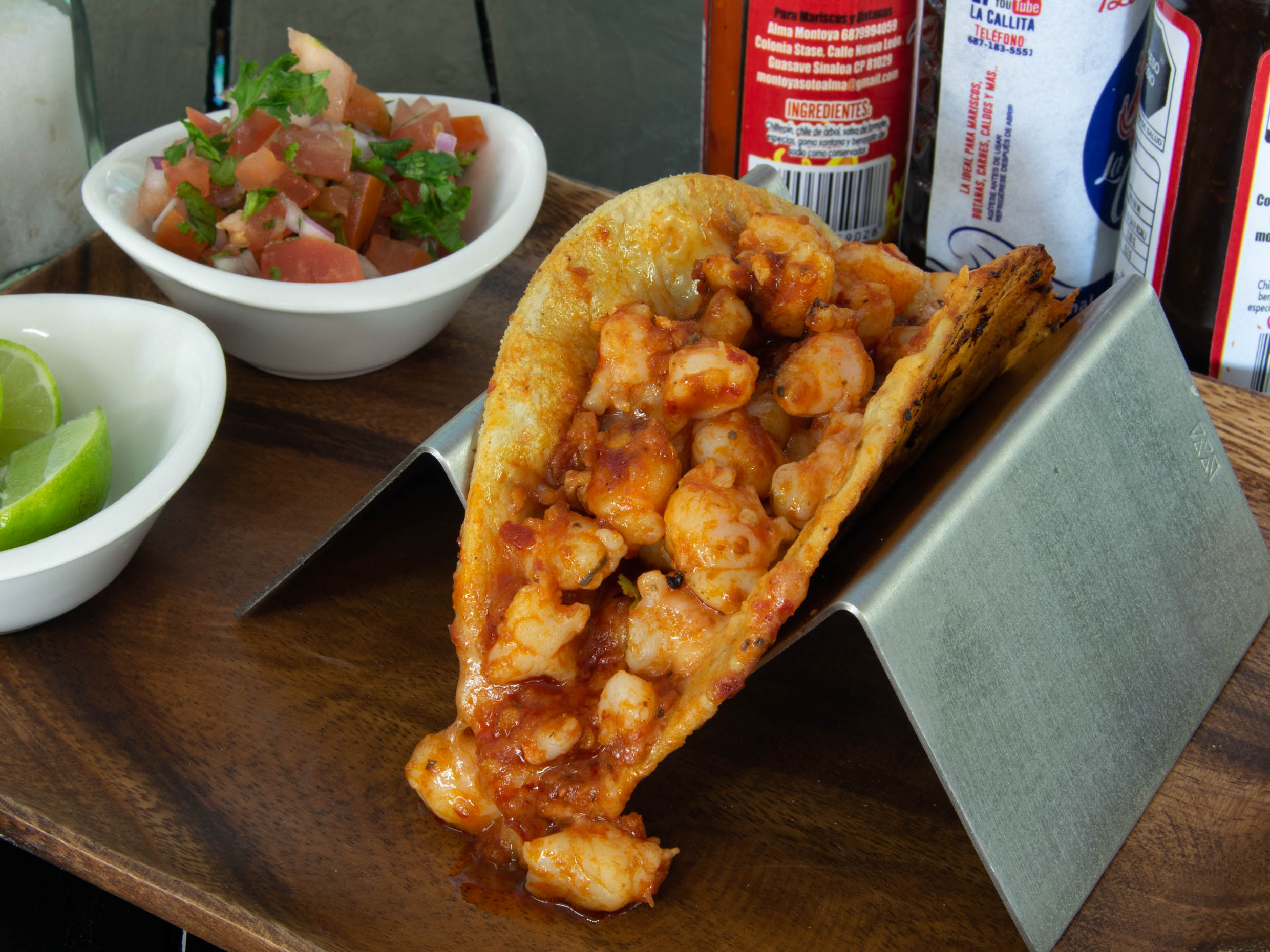 Taco de camarón enchilado.