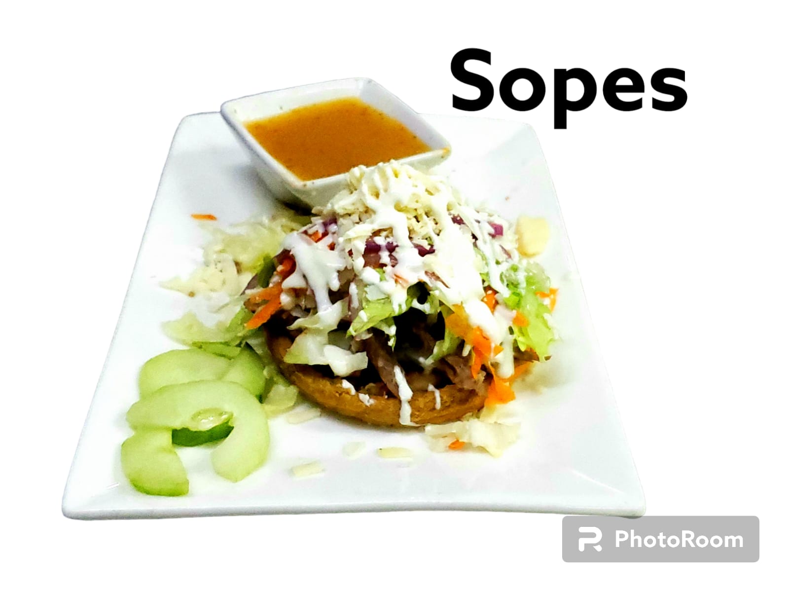 Orden de 2pz, con relleno a elegir con lechuga, zanahoria, cebolla, queso, crema, acompañado de consome