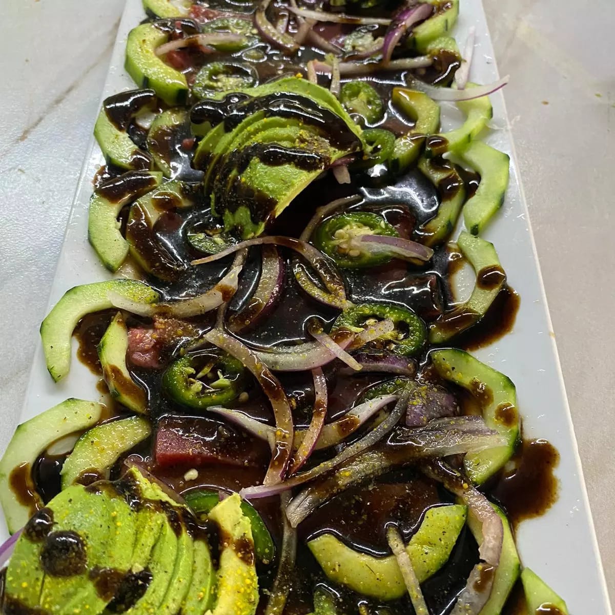 Tostada de ceviche de atún.