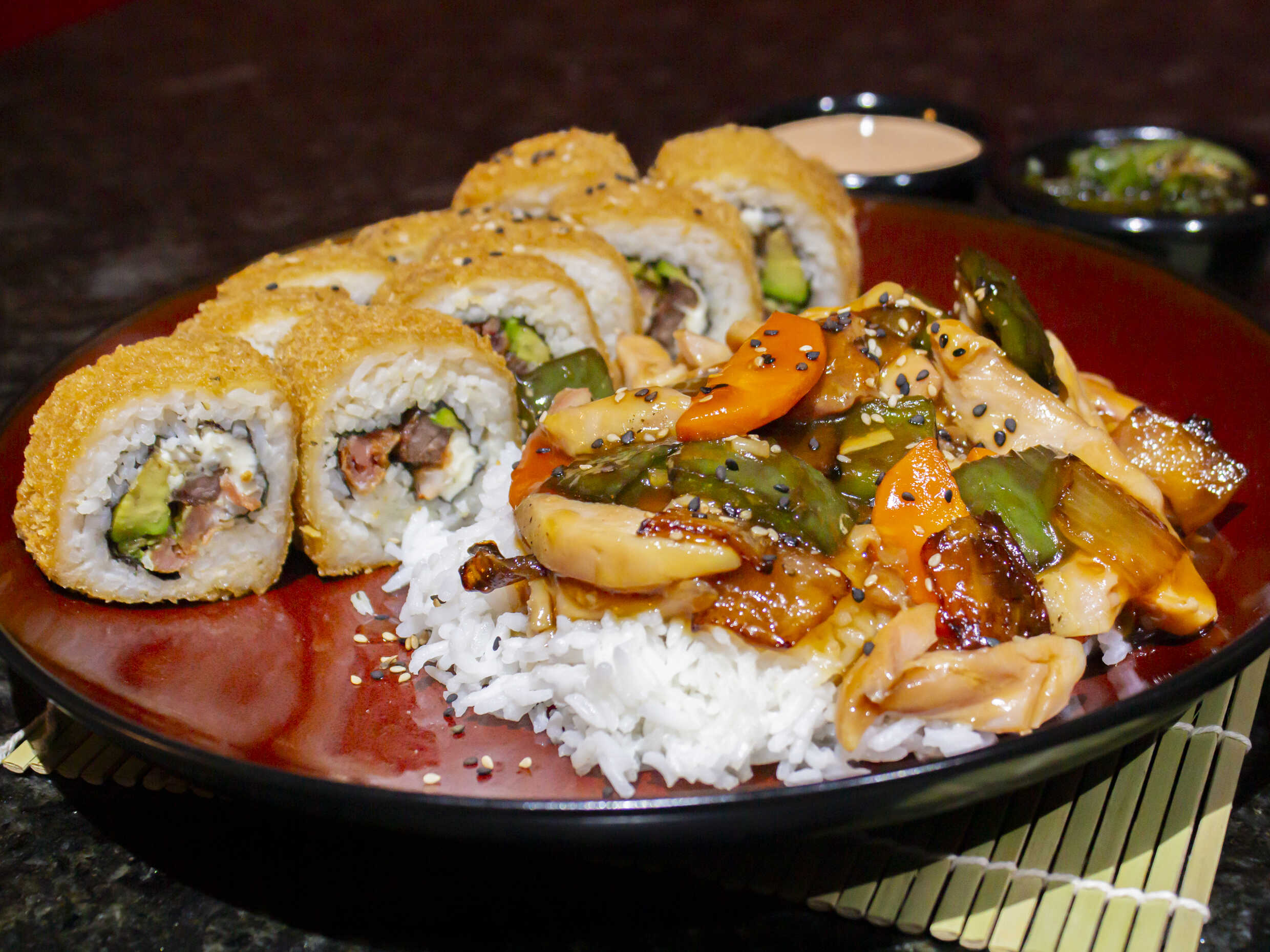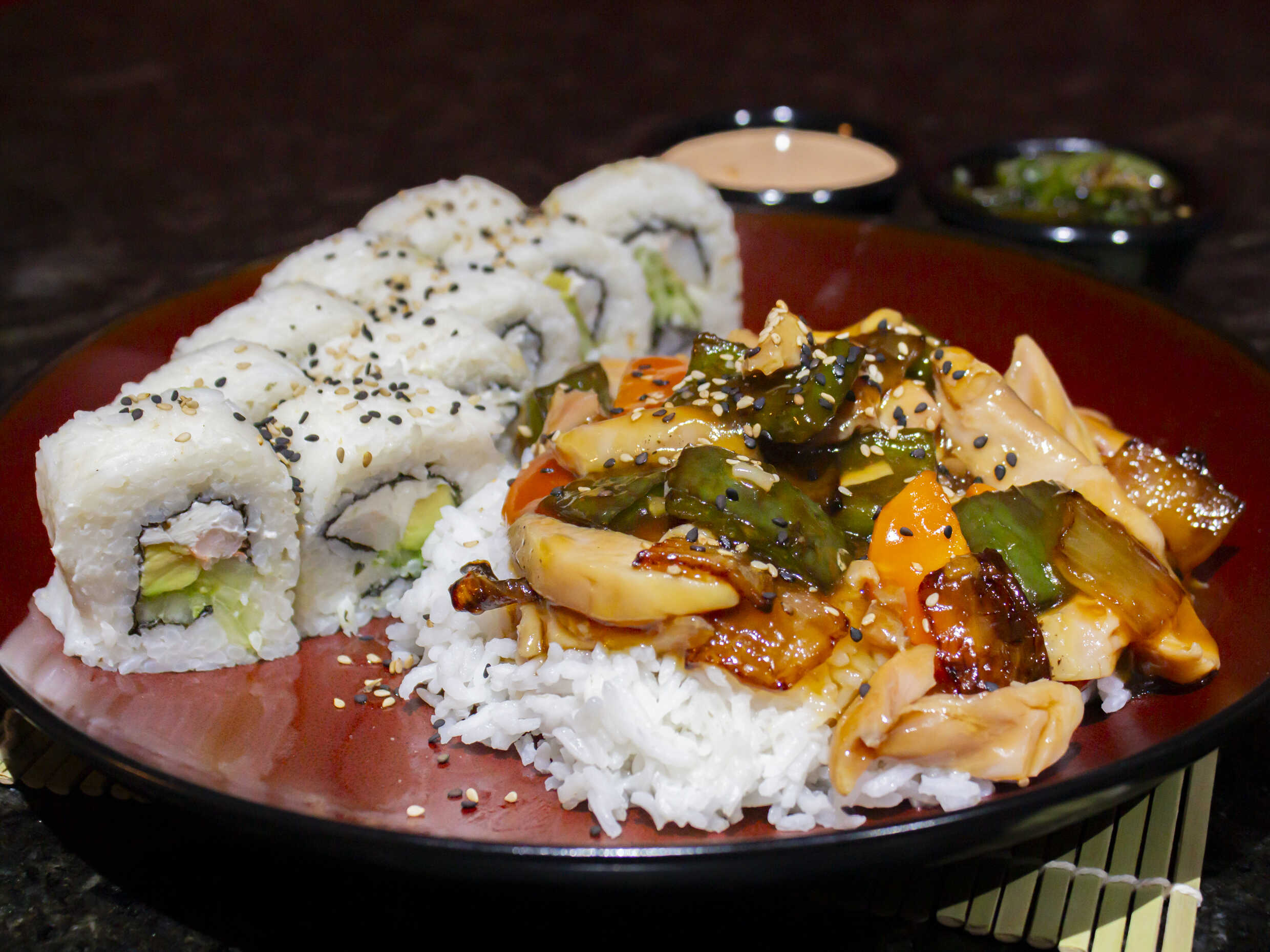 1 rollo cielo mar y tierra y 1/2 tazón de teriyaki