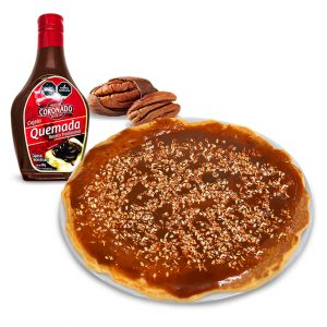 2 deliciosos hotcakes de 22cm con cobertura de dulce de leche, chocolate y nuez