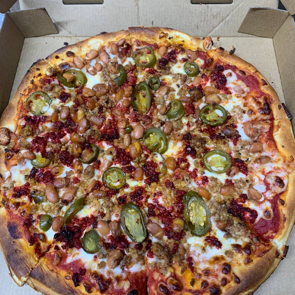 Ingredientes: pepperoni, champiñon, chilorio y morrón, una deliciosa combinación con un toque regional.