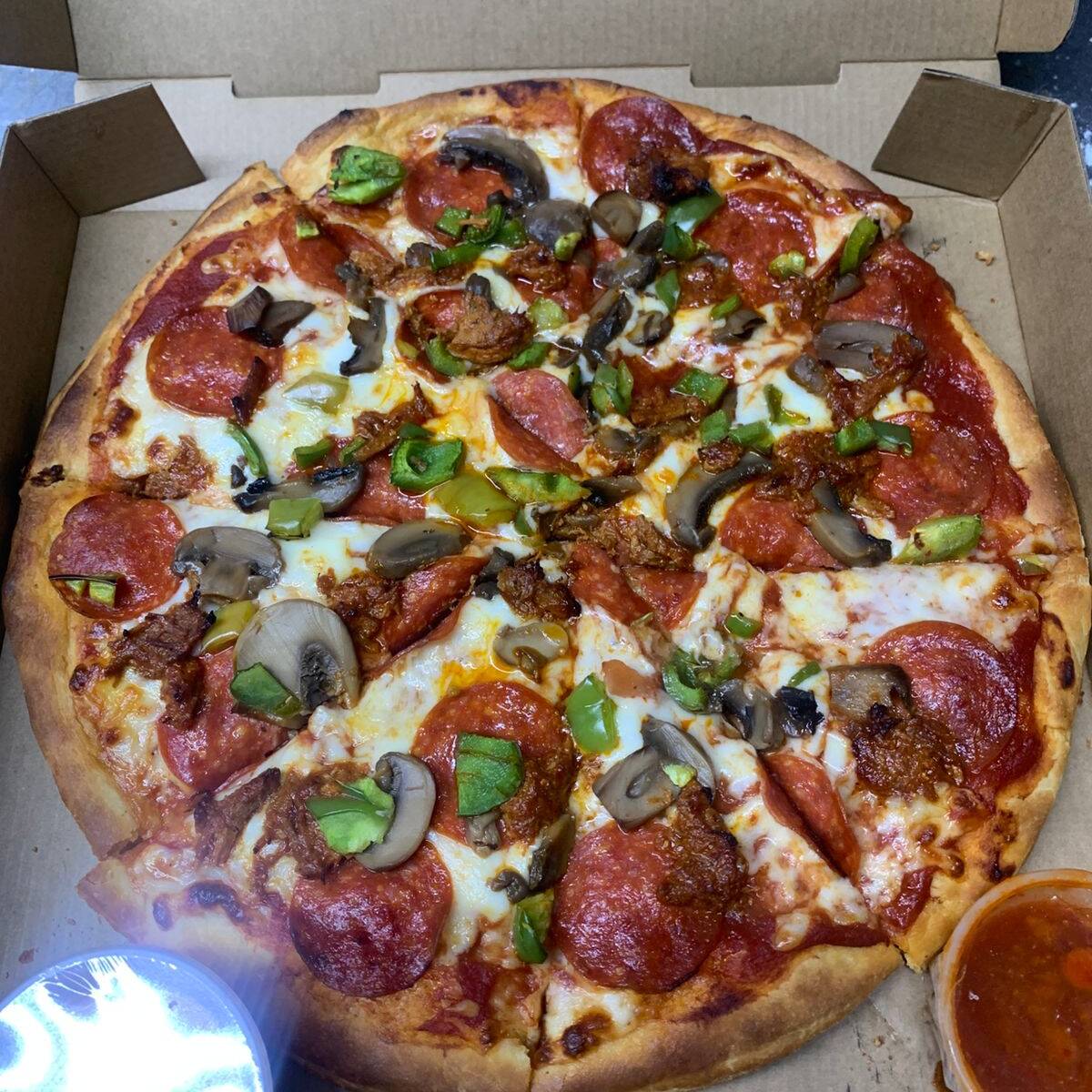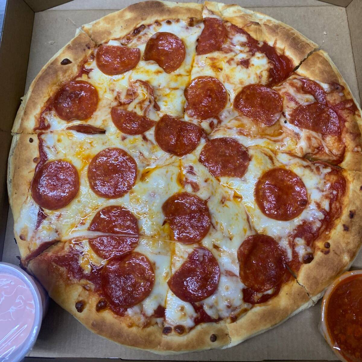 Ingredientes: el clásico sabor del pepperoni con una caja crujiente y sabrosa.