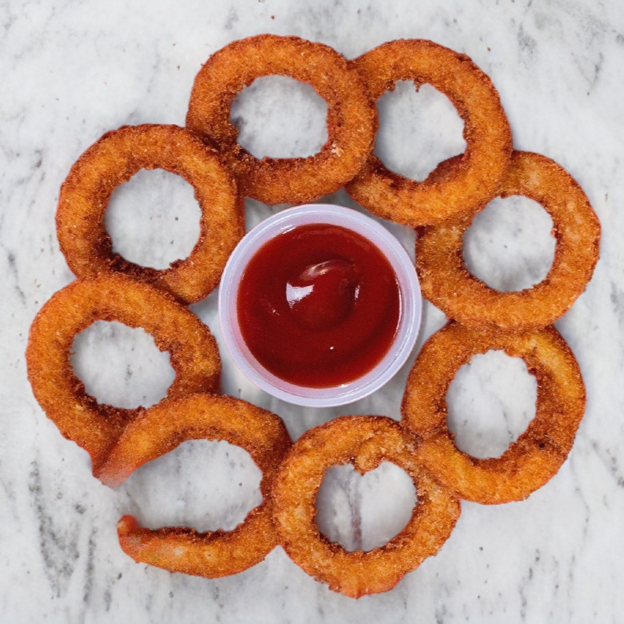 8 pz de Aros de cebolla empanizados y fritos.