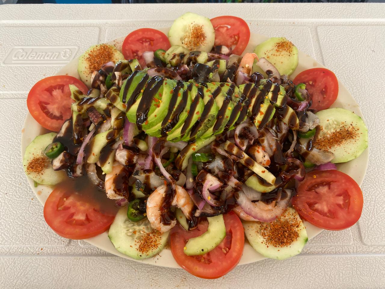 Camarón, aguachile, pulpo y callo.