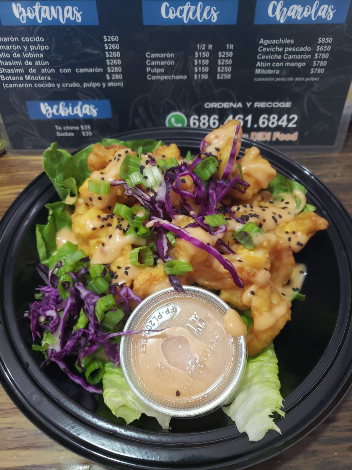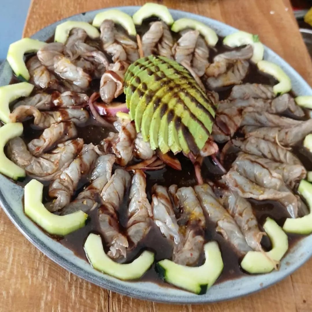 250 gramos de camaron pepino cebolla aguacate en salsa negra