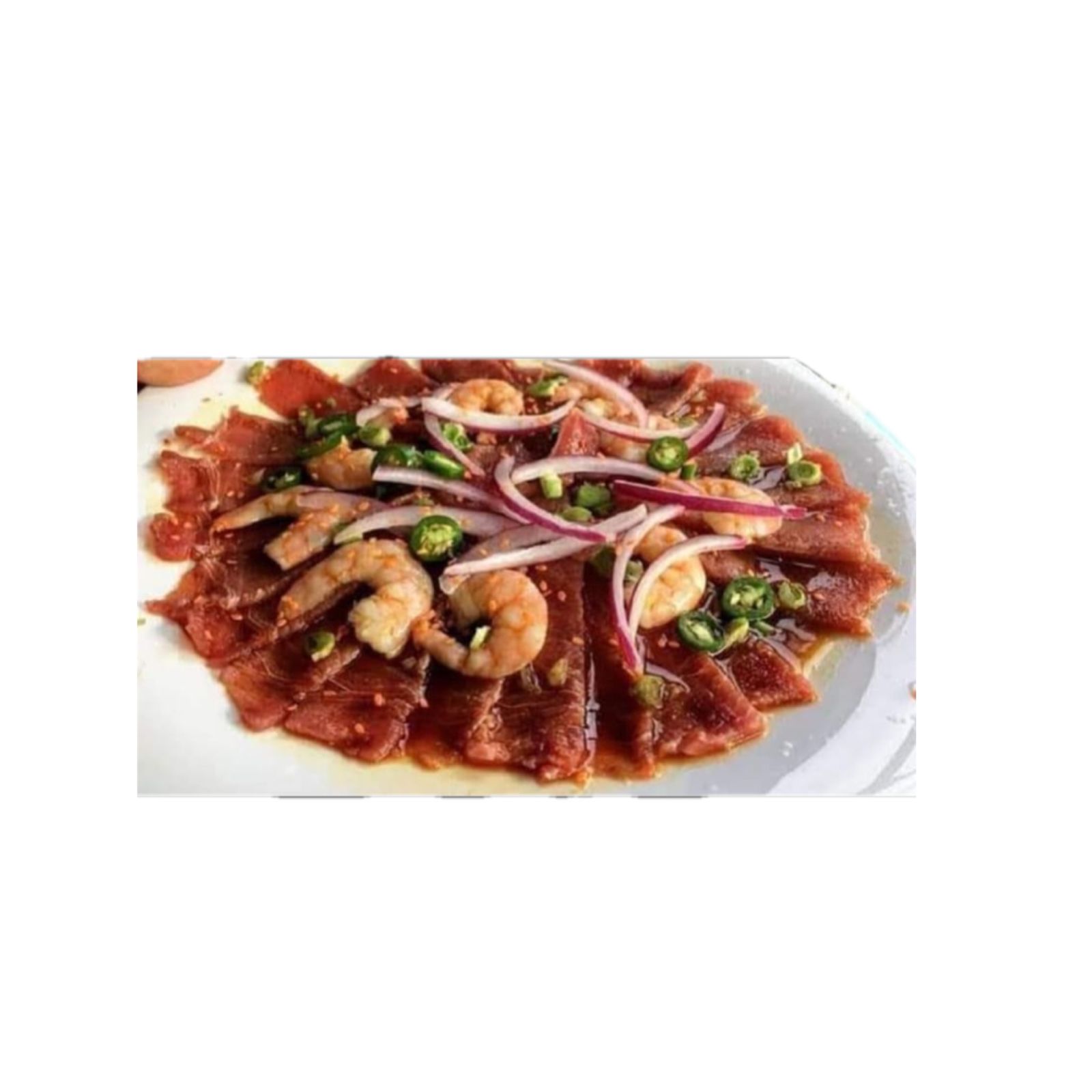 Sashimi de atun 250 gramos atun cebolla aguacate chile serrano salsas negras de la casa