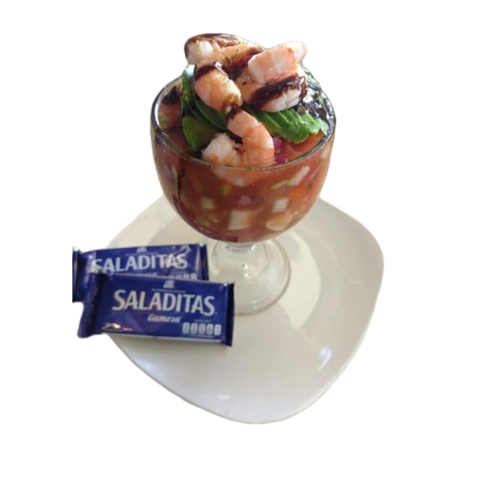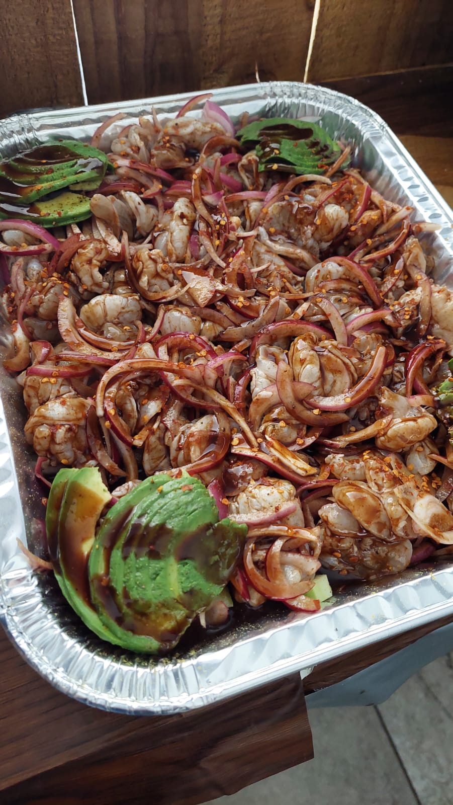 250 gramos de camaron pepino cebolla aguacate en salsa roja
