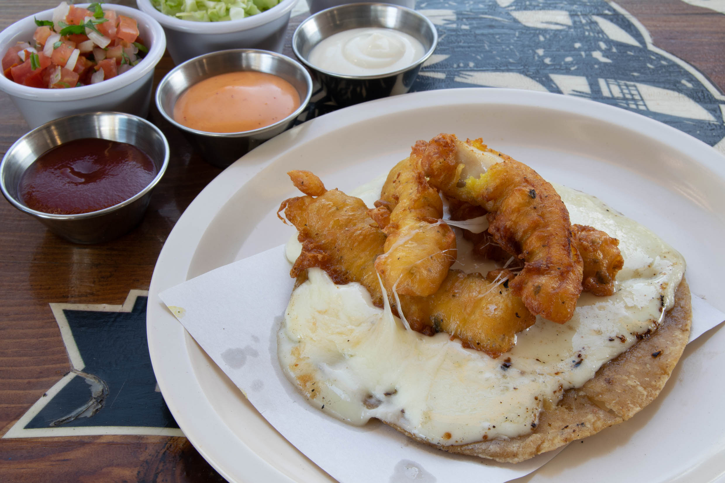 Lleva 3 tiras de pescado verduras y aderezos a elegir