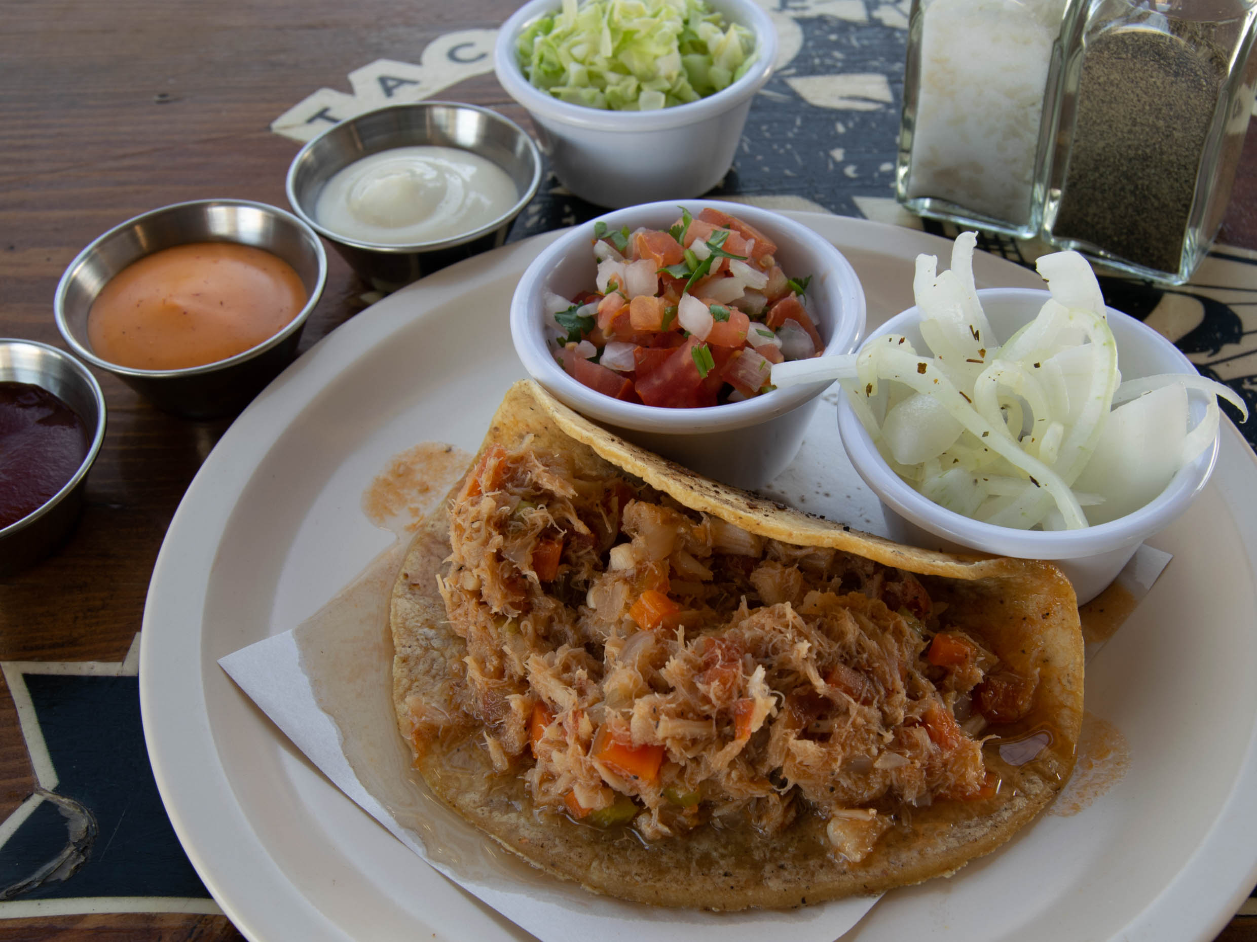 Orden individual: Incluye salsa bandera, cebolla curtida, limón, repollo, catsup, salsa roja, arroz y 3 tortillas de maíz. Acompañado de bebida del día (500 ml). 🌮🥤