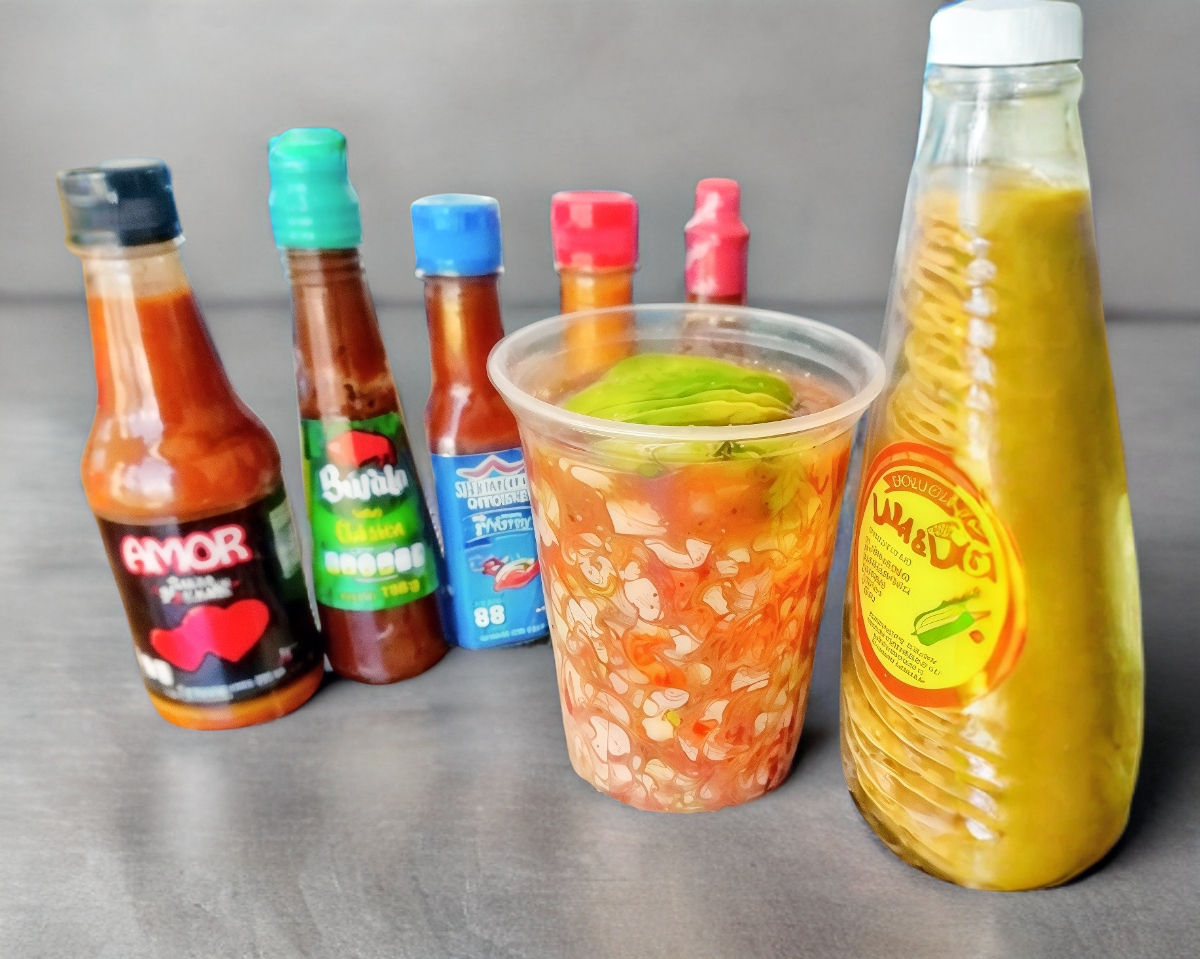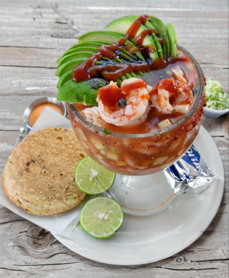 Chabela grande con pescado curtido, surimi pata de mula y camaron vaso 24oz