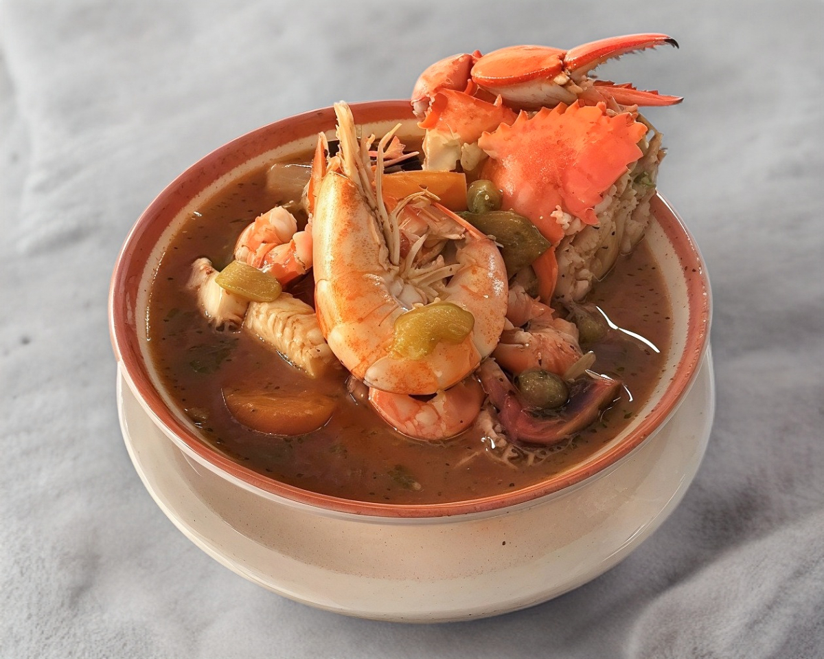 Riquisimo caldo 7 mares con calamar,almeja chocolate,camaron,pescado,caracol y jaiba