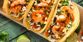 Tres tacos de camarón.