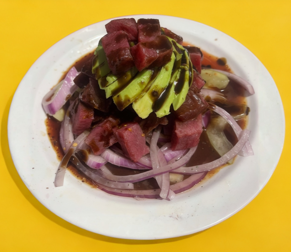 ATUN, CEBOLLA, AGUACATE Y PEPINO CON SALSAS DE LA CASA