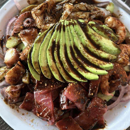 CEVICHE PESCADO CAMARON AGUACHILE PULPO Y CAMARON COCIDO