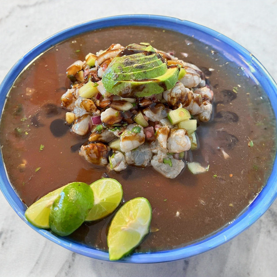 Ceviche de Camarón Curtido en Salsa Negra