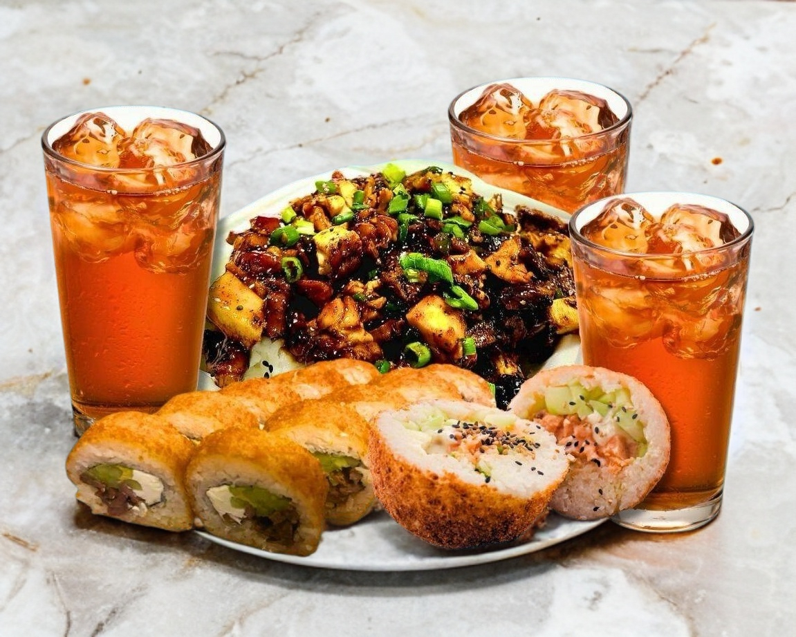 Charola Familiar de Teriyaki y Sushi*1 + Té*1 + Agua de Jamaica*1