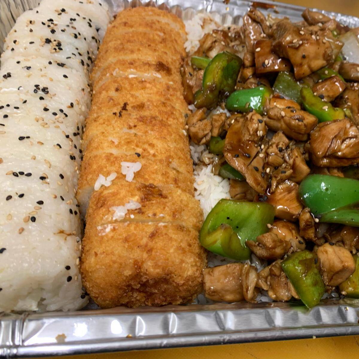 Consta de Teriyaki y dos rollos
