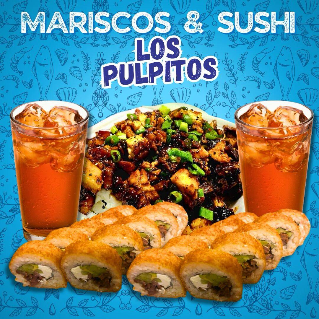 Natural, pepino, aguacate, queso crema, camarón y pulpo con toppings de pulpo, camarón, salsa siracha y mayonesa.