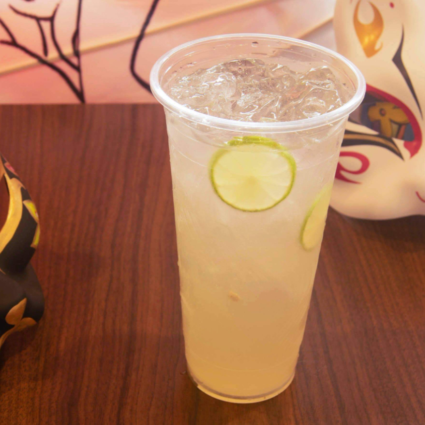 Fresh tea a base de te verde con jazmin con sabor de lychee y con topping de jelly lychee