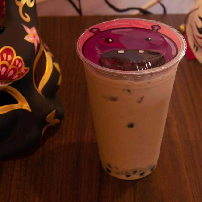 Bebida a base leche con jarabe black sugar(dulce sabor de la boba)