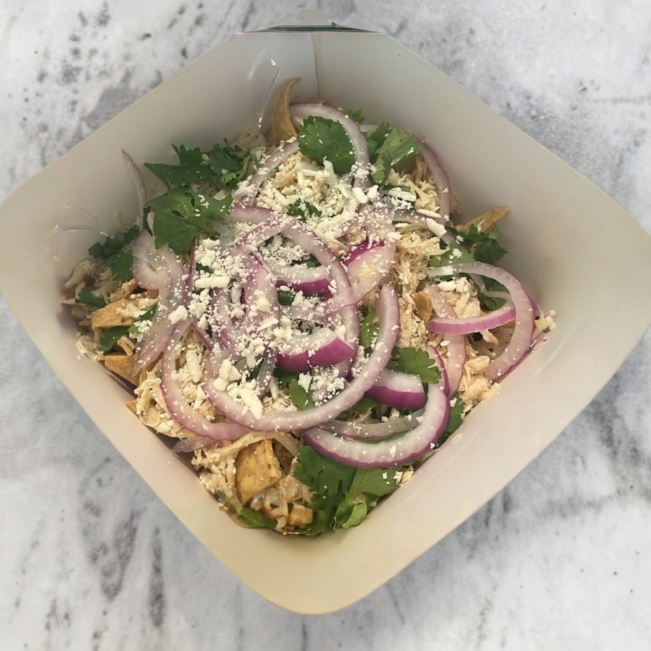 🌶️🥚¡Aquí no venimos a jugar! Totopos de tortilla de maíz hechos en casa, bañados en salsa verde o roja (la que tú mandes), cubiertos con pechuga de pollo desmenuzada, cremita suiza, queso fresco que se derrite de amor y cebolla morada para el crunch. Todo coronado con un toque de cilantro fresco. Desayuno, comida o antojo... siempre es momento de chilaquiles bien hechos.