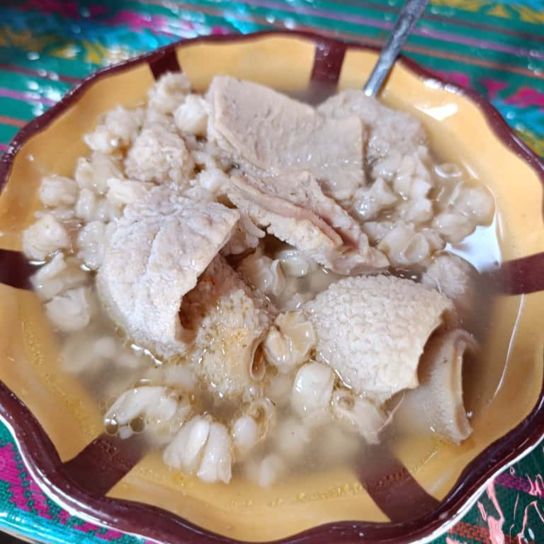 Menudo grande blanco, preparado con caldo bien sazonado y suave, servido con abundante carne. Puedes disfrutarlo con maíz para un toque más tradicional y consistente, o sin maíz si prefieres un sabor más ligero y limpio. Perfecto para empezar el día con sabor y energía
