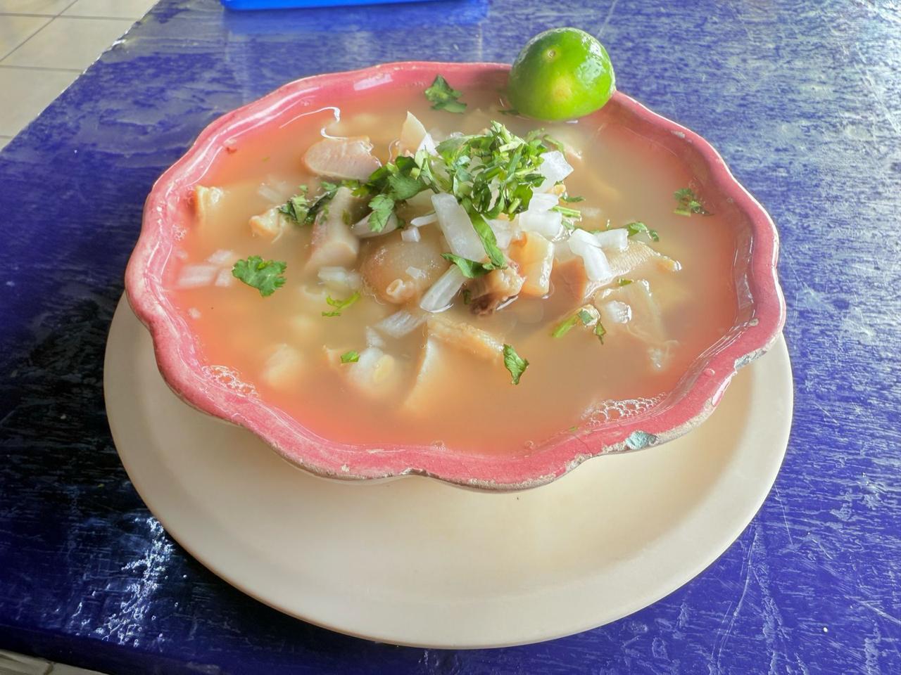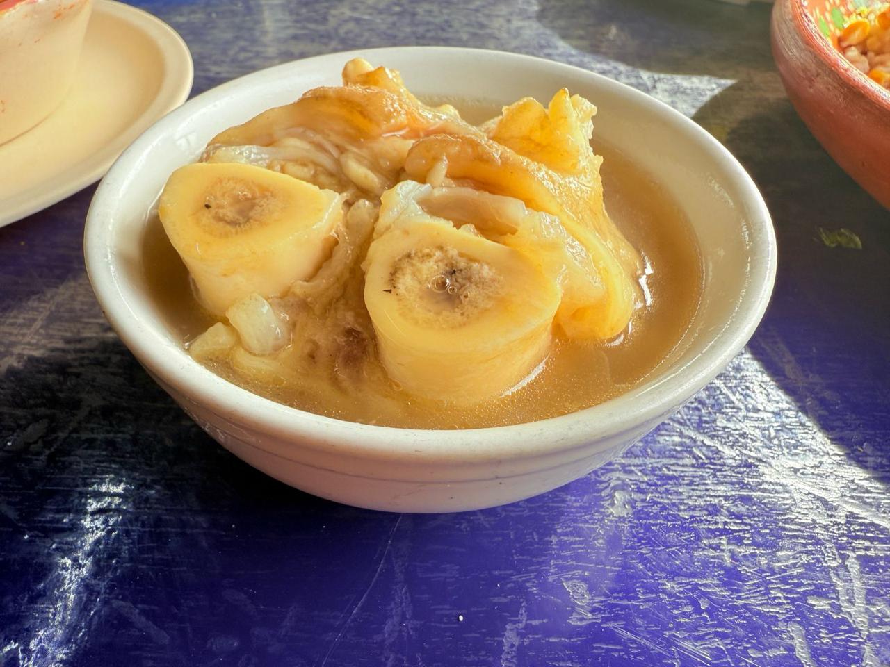 1 SOPE DE CARNE CON FRIJOL, LECHUGA, TOMATE, CONSOME,CEBOLLA MORADA, QUESO COTIJA Y CREMA