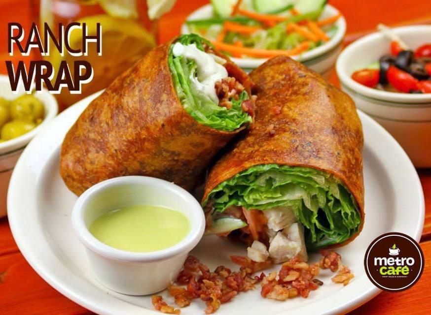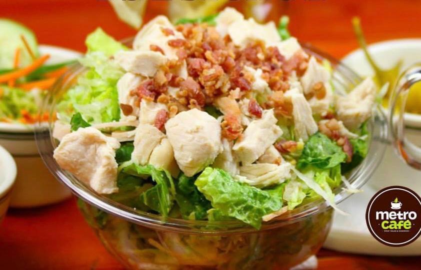 Pechuga de pollo, lechuga romana, queso, tocino, tomate y pepino con aderezo ranch.