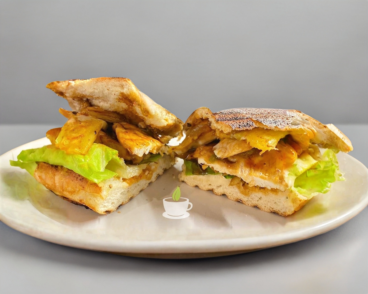 Pechuga de pollo a la plancha, bañada en salsa teriyaki, piña asada y lechuga.