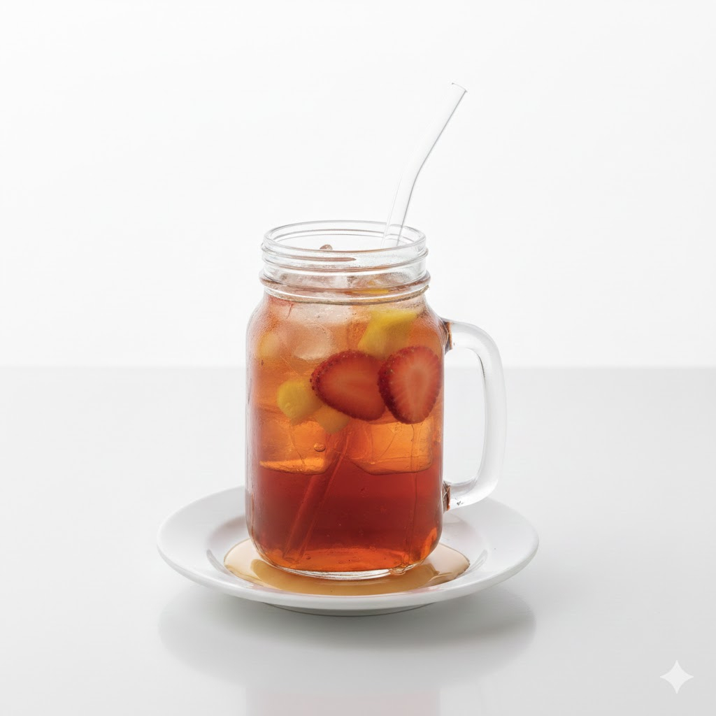 Con fresa, piña, y jarabe natural.