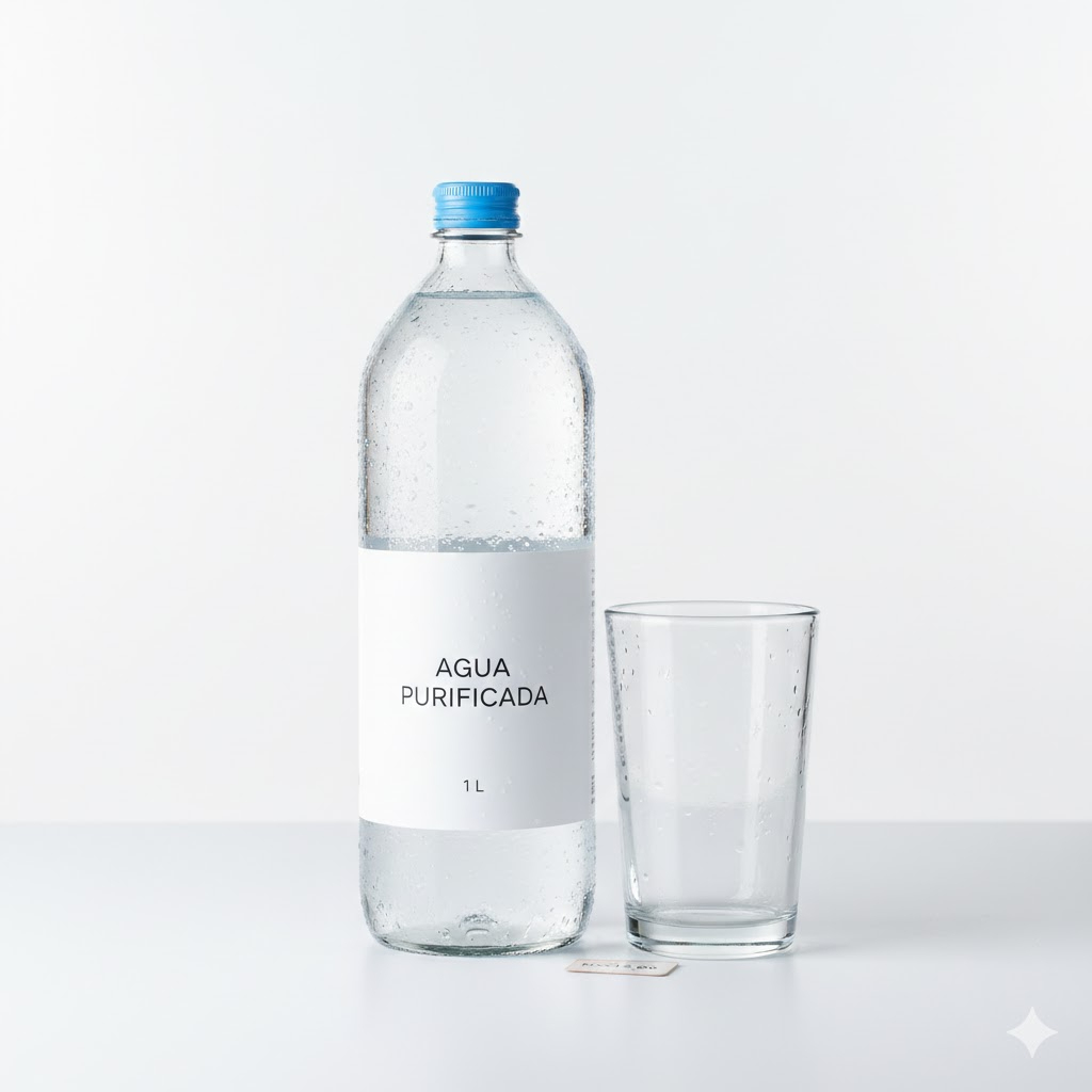 Macerado de fruta natural, shot de limon, y agua mineral en las rocas
