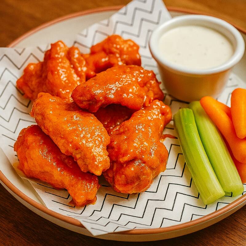 300g de boneless bañados en salsa bufalo acompañado de aderezo ranch , zanahoria y apio