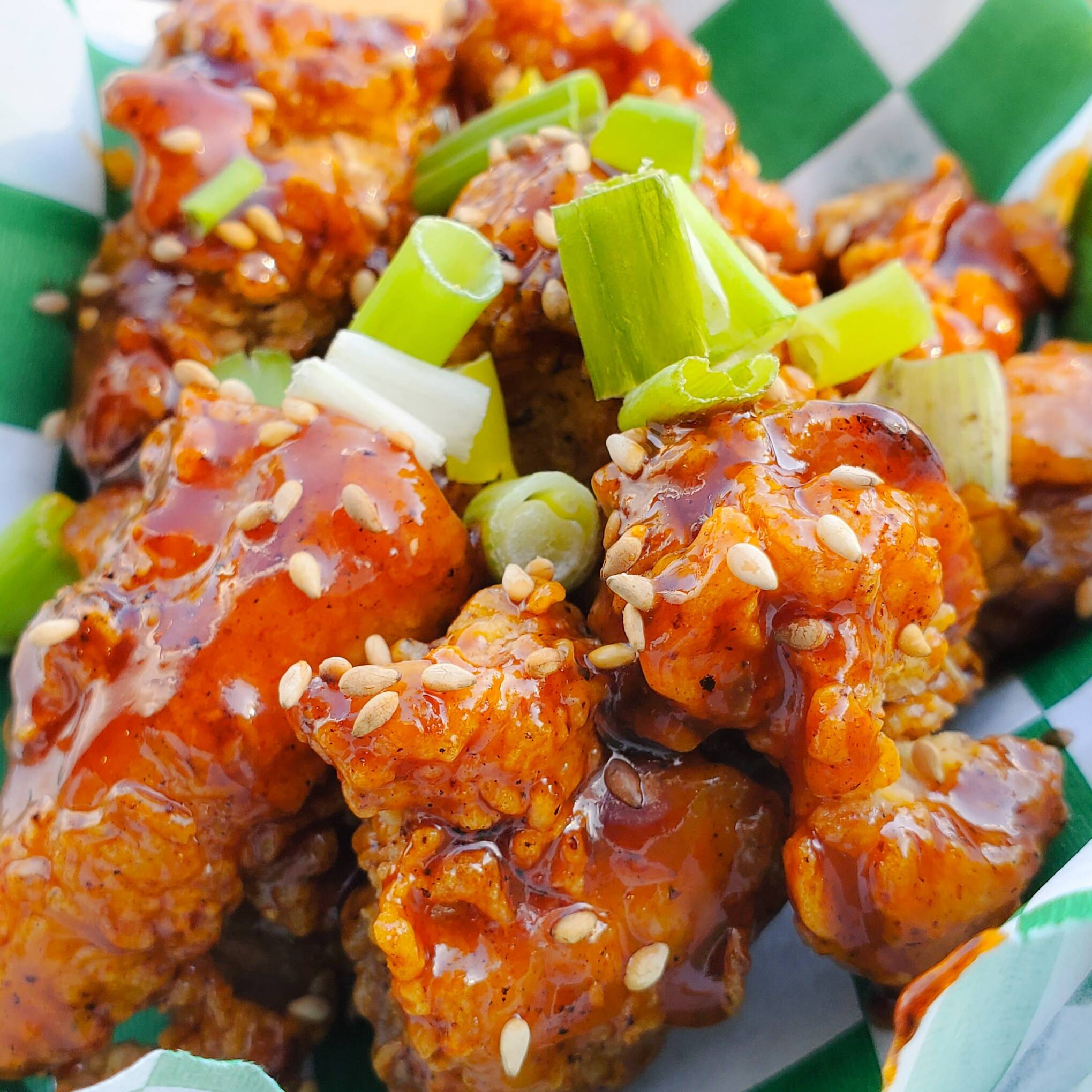 250gr trozos de pollo frito crujiente, marinado 24 horas, con salsa agridulce tradicional Gochujang