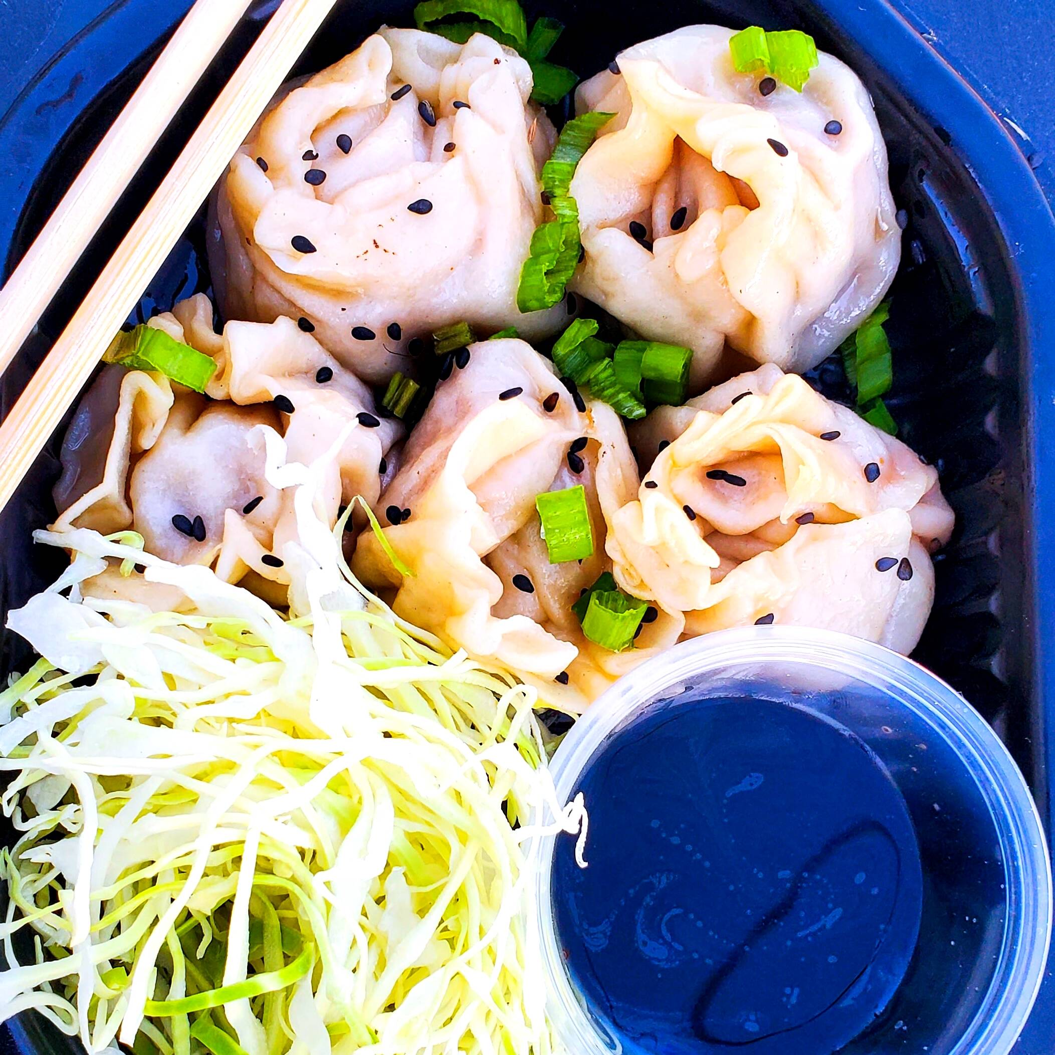 5 pz de mandu, empanadilla coreana crujiente, relleno de kimchi fresco. acompanado con repollo y salsas.