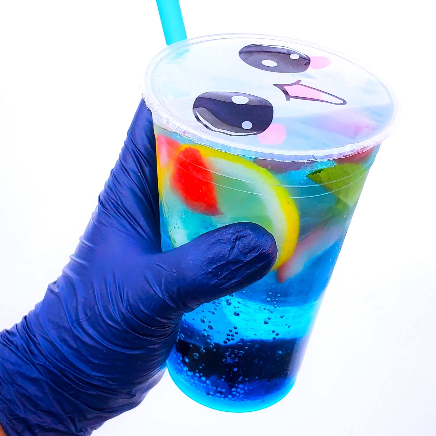 Bebida coreana con frutos rojos, Sabor Moral azul, con soda mineral.