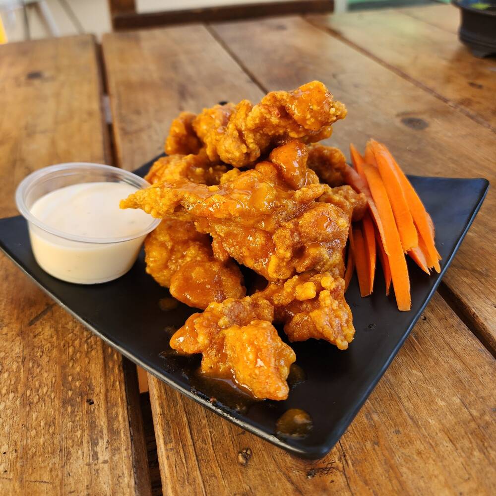 Alitas crujientes al estilo coreano, con alguna de nuestras salsas coreanas artesanales.