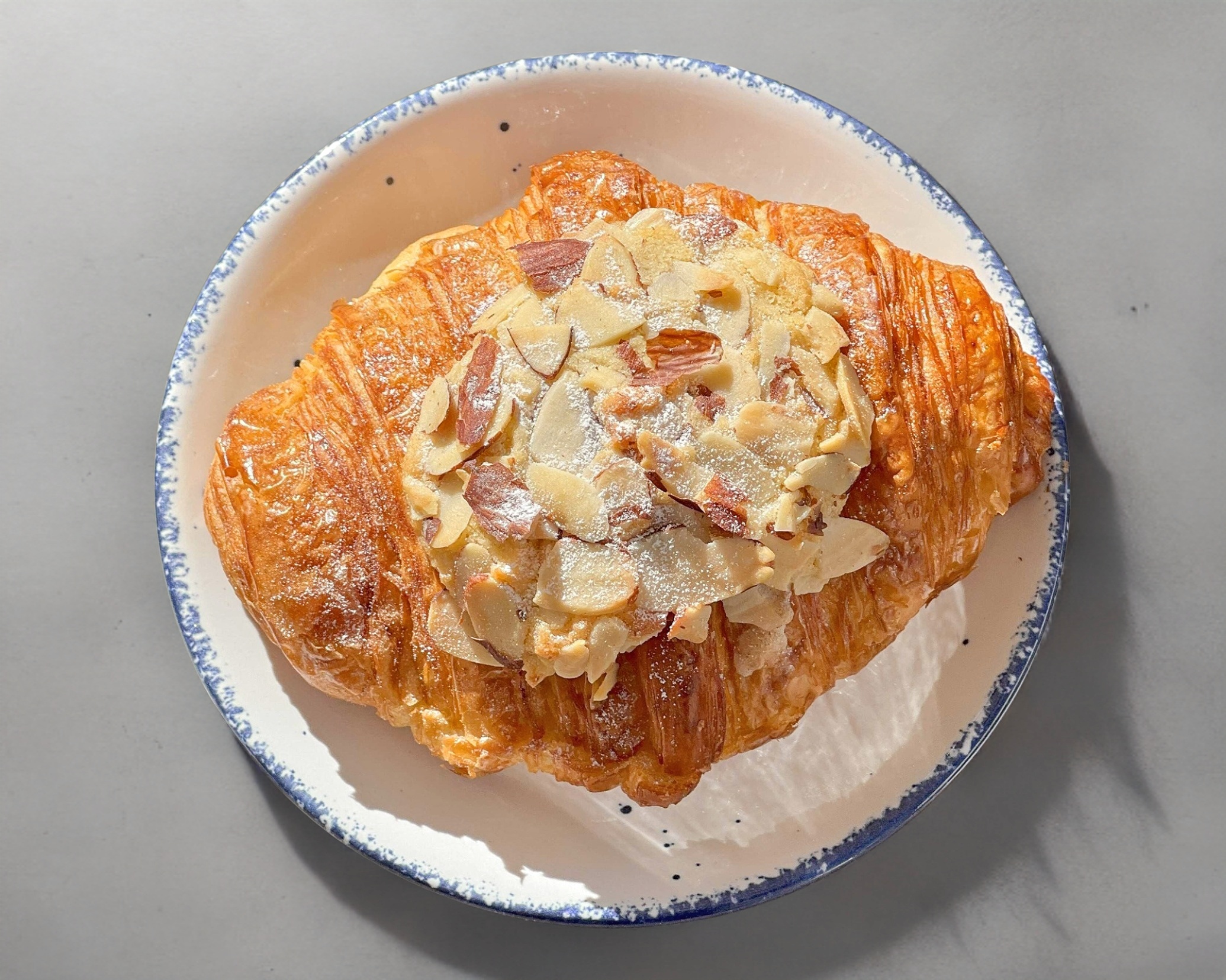 Croissant relleno de crema de almendras y chocolate semi amargo.